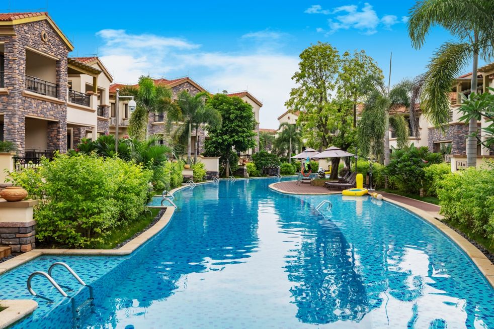露天亲水泳道横贯别墅群之中,别墅后花园开门一跳,即可活水环绕;岸边花草树木相伴,度假区虫鸣鸟叫,夏日水中激情狂欢,实为休闲度假,家庭欢乐最理想的选择。