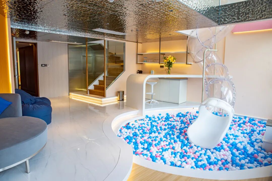 ●入住指定户型客房1套1晚; ●赠送醒神农家早餐套餐(送入房间,09:00-11:00,预约时段) ●(五月周六独享)赠送侨水茶饮 2 杯(暴打柠檬茶或咖啡) ●赠送入户欢迎茶点礼遇、欢迎汽水(可乐、雪碧、苏打水、儿童饮品); ●阳台泡池,赠送泡池汤浴一套:牛奶/玫瑰/艾草/中草药包泡浴一份; ●畅玩大堂游戏区、街机、游戏机、篮球机、冰球、足球、射箭、套圈圈、投壶 ●畅玩泳池水道、大喇叭、卡通充气水泡、皮划艇、充气城堡、无动力小船、水枪 ●畅玩 DIY 区:绘画、黏土、手工; ●畅享大堂休息茶点区、饮品区、阅读区 ▷ 主题房型每天预约配合量,最终以酒店发出预约房态为准 ▷ 当天可预约,以酒店的房型房态及确认预约为准 ▷ 特惠促销产品及节假日预订,除不可抗力因素外,一经预定不可以退改! 套餐包含 【产品包含】 ●入住指定户型客房1套1晚; ●赠送醒神农家早餐套餐(送入房间,09:00-11:00,预约时段) ●(五月周六独享)赠送侨水茶饮 2 杯(暴打柠檬茶或咖啡) ●赠送入户欢迎茶点礼遇、欢迎汽水(可乐、雪碧、苏打水、儿童饮品); ●阳台泡池,赠送泡池汤浴一套:牛奶/玫瑰/艾草/中草药包泡浴一份; ●畅玩大堂游戏区、街机、游戏机、篮球机、冰球、足球、射箭、套圈圈、投壶 ●畅玩泳池水道、大喇叭、卡通充气水泡、皮划艇、充气城堡、无动力小船、水枪 ●畅玩 DIY 区:绘画、黏土、手工; ●畅享大堂休息茶点区、饮品区、阅读区; 温馨提示 ▷ 主题房型每天预约配合量,最终以酒店发出预约房态为准; ▷ 当天可预约,以酒店的房型房态及确认预约为准; ▷ 特惠促销产品及节假日预订,除不可抗力因素外,一经预定不可以退改! 台山岭南侨水度假村是一家高品质度假型酒店,位于台山市大江镇江新高铜线开发区8号江山多骄国际文旅展贸城4楼,酒店内游玩设施完善,无论是亲子出游、情侣度假还是和朋友实现“逃离城市计划”,你都能在这里找到属于你的“人间有味是清欢”。 NIRVANA TAISHAN ▲ Vol.1 在水中拥抱自由 酒店有华南水上威尼斯之称,泳道采用无边泳池设计,相当于拥有1000平米的超大无边泳池。泳道设置了各种丰富好玩的水上设施,炎炎夏日,你可以乘着小船悠悠地在泳道上漂浮;你可以和小伙伴们游泳打水仗;你可以玩到长隆同款的水上小喇叭;你还可以一头扎进像云朵一样柔软的泡泡堆里。 Vol.2 让趣意照进生活 酒店拥有多样化的主题客房,每一间都有独特的惊喜,亲水房型让你一出阳台就能扎进水里尽情玩乐~ 豪华星空房,房间顶部装设天幕玻璃,白天能更好的采光,夜晚更能让客人伴星入眠,颇为惬意。 ✿床型:1.8米床*1张 一房一厅亲水别墅,独立泡池,带花园,麻将机,烧烤炉,给客人带来悠闲自然的度假体验。 ✿ 床型:1.8米床*1张 ✿ 门前嬉水池,带独立花园·温矿泉,麻将机,烧烤炉 丛林主题房,充满绿意的大型亲子房,内置大小朋友都能玩的欢乐滑梯,露台自带按摩泡池,让你仿佛置身大自然中入睡。各位小小探险家们,你们能找到调皮的小猴子躲到哪去了吗? ✿床型:1.8米床*1张 1.5米沙发床*1张 1.2米儿童床*1张 ✿复式叠墅,独立按摩泡池,房内超长滑滑梯 海洋主题房,利用了高挑的楼高空间设计成复式户型。在蓝色大海的深处,除了鲸鱼和珊瑚,还有“溜娃三宝”滑梯、爬网和波波池,就算待在房间里也能high玩一整天! ✿床型: A:1.8米床*1张 1.5米沙发床*1张 1.2米儿童床*1张 B:1.8米床*1张 1.2米儿童床*1张 小白马主题房,充满梦幻色彩的房内设计,带着童话色彩的复式亲子房,满足每一个小朋友成为王子公主的梦想。不仅有可以直接爬到第二层的攀爬网,露台还自带按摩泡池。 ✿床型:1.8米床*2张 ✿复式叠墅,私密独立泡池,房内带攀爬网 THE ONE玻璃别墅,超大独立天台,能直接看到大半个酒店的美景,仲夏的夜晚和三五知己一起吹着晚风烧烤,享受属于夏天的仪式感。你可以从房间里的滑梯滑进一楼的超大波波池,也可以坐着直通泳池的超长滑梯一头扎进清凉的泳池中。 ✿床型:1.8米床*2张 1.5米沙发床*1张 ✿独立露天天台可烧烤聚会(三层别墅) 拥有两房、三房、五房亲水别墅供家庭出游选择,均配有独立庭院和养生泡池,既可以在庭院里快乐BBQ,又可以泡进泡池里放松身心,独享自在快活,尽收四面旖旎醉人风景。 两房一厅别墅: ✿床型:1.8米床*2张 ✿门前嬉水池,带独立花园·温矿泉·麻将机·烧烤炉 亲水三房一厅别墅: ✿床型:1:1.8米床*1张 2:1.2米*2张 3:1.8米床*1张+一张1.2米床 ✿带独立花园·温矿泉·烧烤·麻将机 亲水五房一厅别墅: ✿床型:1.8米床*5张,带独立卫生间 ✿门前嬉水池,带独立花园·温矿泉·麻将机·烧烤炉 ![]() 说走就走是生活中最华丽最奢侈、最灿烂的自由,身体和灵魂必须有一个在路上。我们希望把文化融入到生活里,让您留下美好的假期回忆,重新定义旅游,享受您该享受的。 ✦+ + + + + + + + + + + + + 休假是放松,是感受当下,是取悦自己,是将快节奏生活调回自己喜欢的频道。 暂别工作之余的蜗居,逃离生活的柴米油盐,抵达出游的暂居之地。静静地坐在露台中,看看天空,看看波光粼粼的水面,今日你不再是往日匆匆的过客,而是这里的主人。 + + + + + ✦+ + 最贴心的管家服务 我们提供24小时超贴心管家服务,小侨小水随时待命,给予你家人般无微不至的关怀。 ✦+ + 最用心的惊喜准备 生活需要仪式感,就像平凡的日子需要一束光。我们提供惊喜布
