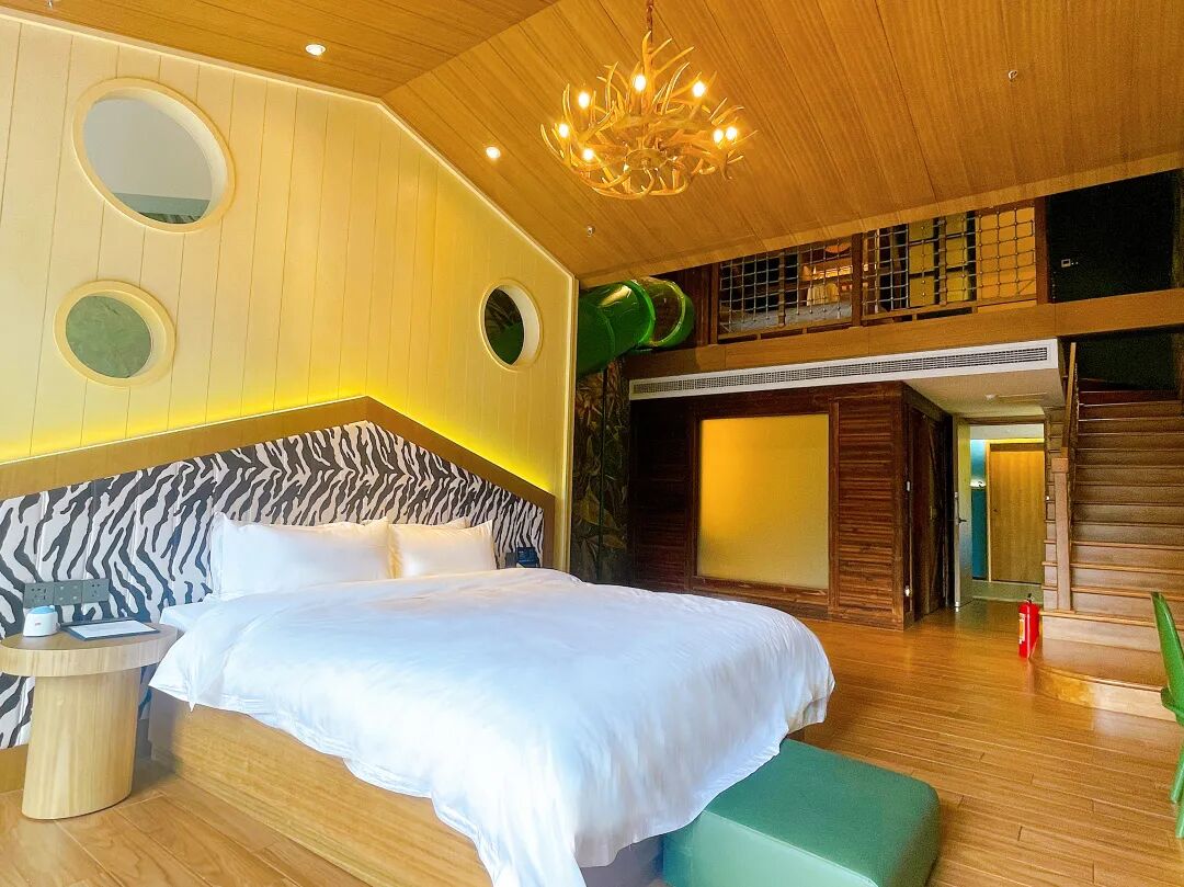 【玩足一整天"吃喝玩乐全包】专享自助晚餐+凤凰温泉+无动力乐园¥566元起熹乐谷内特色主题一房一厅,遛娃一流"疯狂玩水