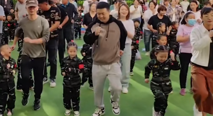 跟着教练一起跳拖拉机舞,大人动作干练,小孩萌趣可爱,手脚齐动,活动筋骨,以最佳的状态迎接下面的挑战吧。