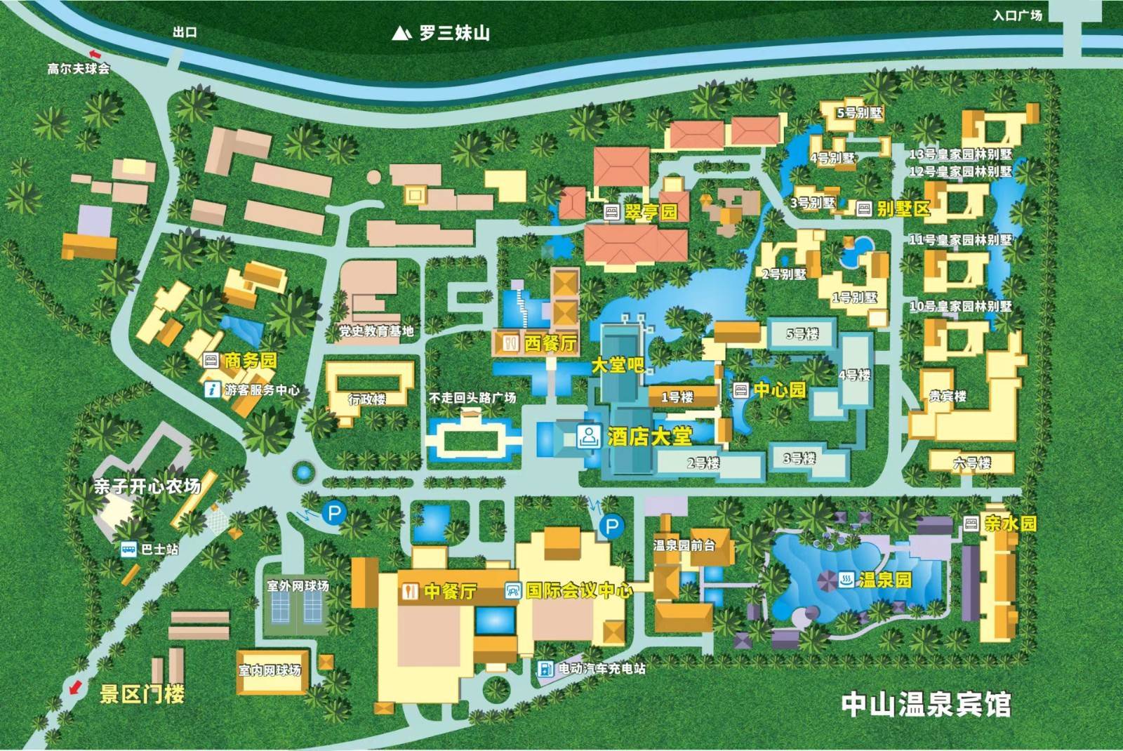 是一个由星级酒店、罗三妹山、高尔夫球场、天然温泉组成的复合型旅游度假区