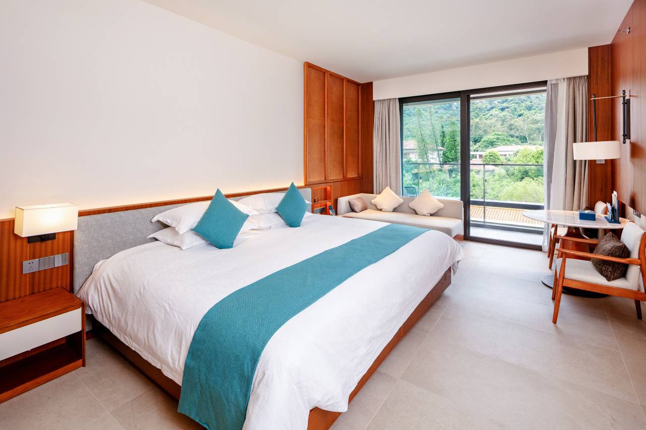 毗邻温泉园,开阔的观景阳台将山湖美景引入到室内
