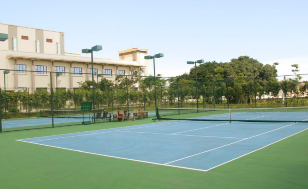 设有儿童游乐室、网球场等休闲场所