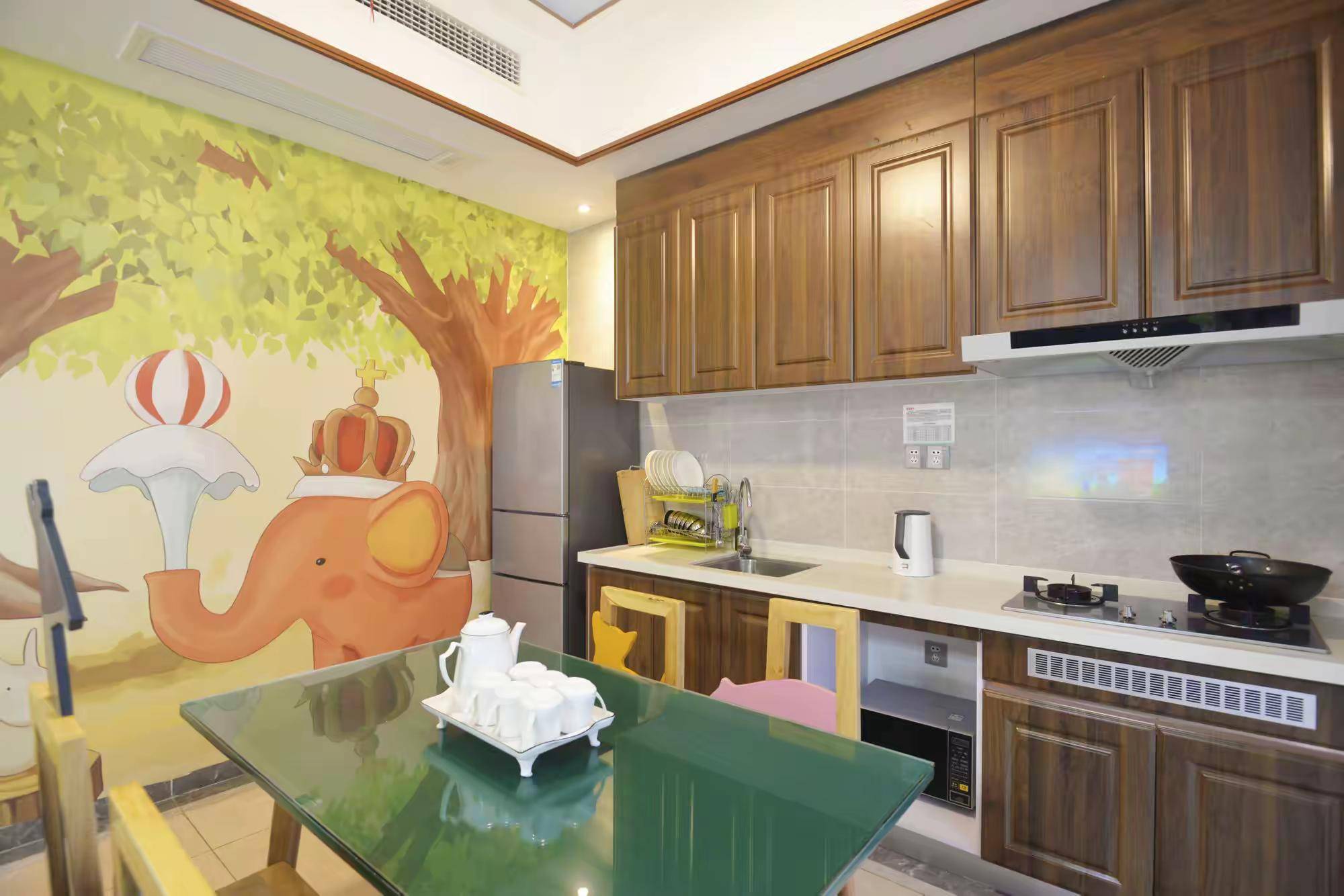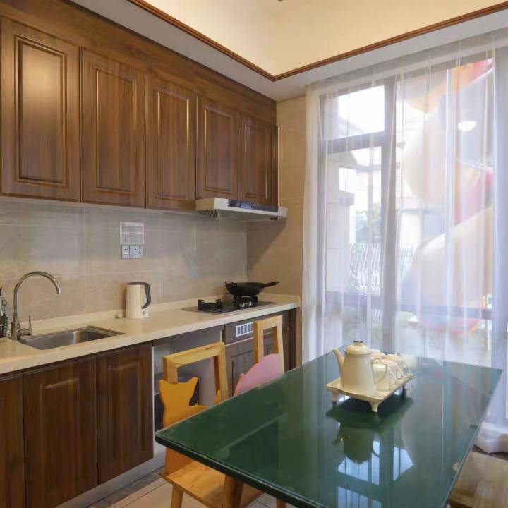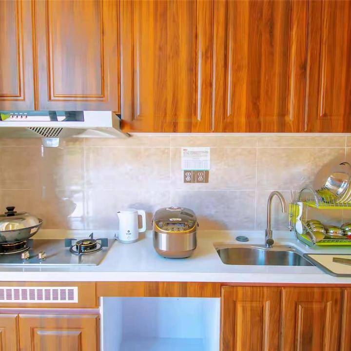 4、开放式厨房(提供天然气灶+电火锅+电饭煲+炒锅+冰箱+菜盘、砧板、刀具)
