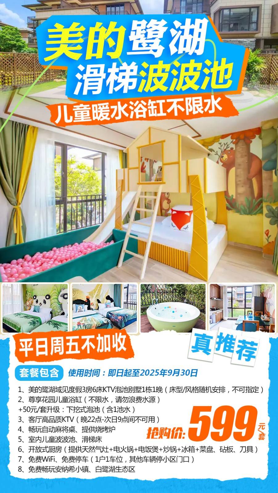 1、美的鹭湖域见度假3房6床KTV泡池别墅1栋1晚(床型/风格随机安排,不可指定)