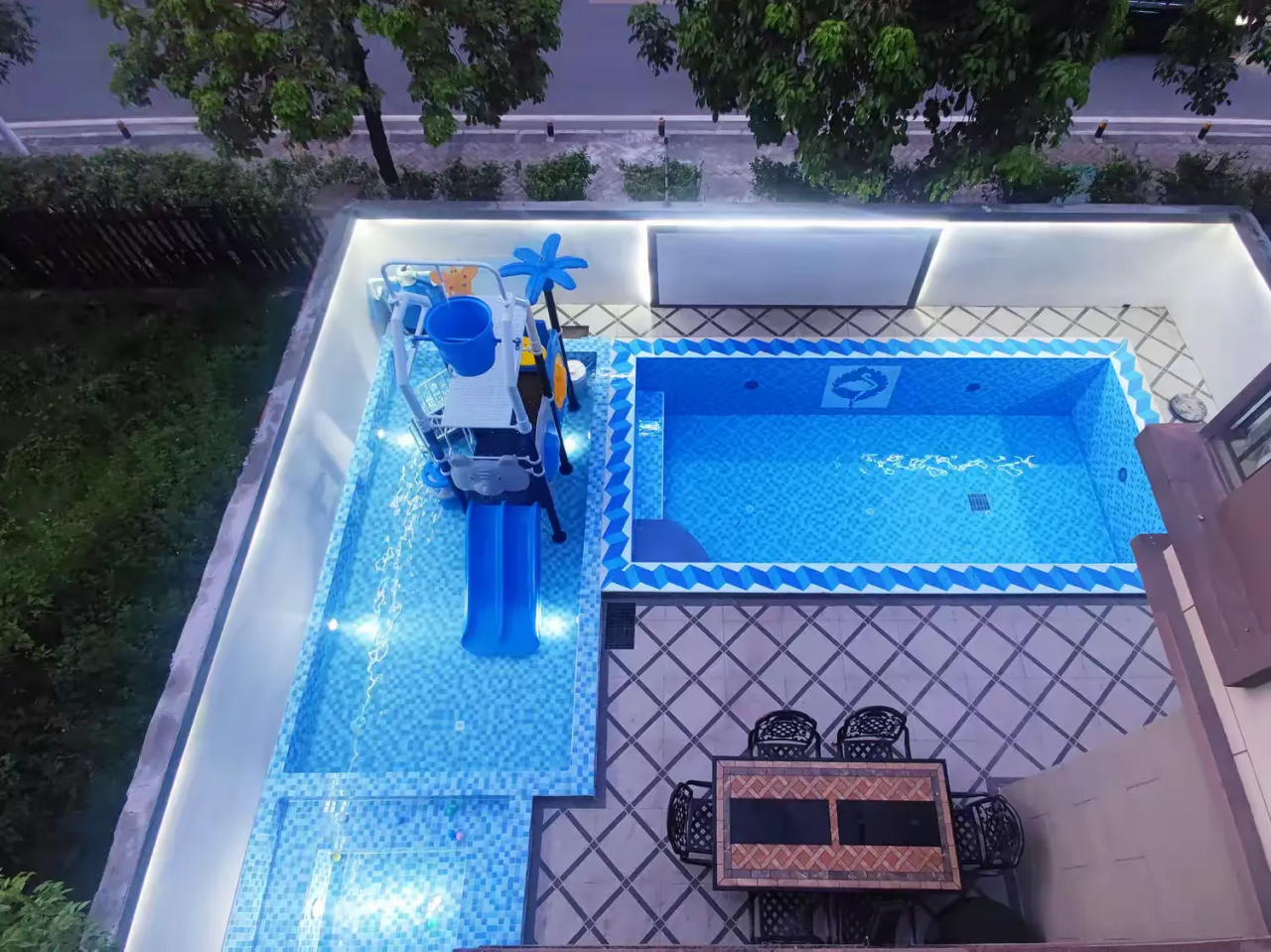 ▲由于泳池较大,池水每天进行过滤消毒,并非一客一换,介意者慎拍,如需更换泳池水(收费),提前与管家沟通