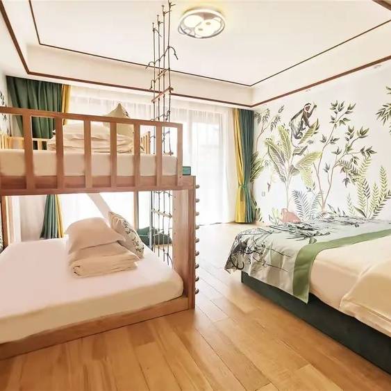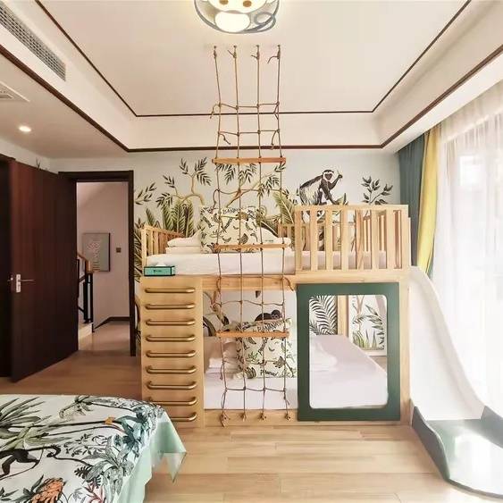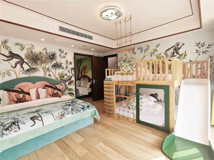 卧室2:1张1.8米床,1张1.5米床,1套1.5米滑梯亲子床上下铺