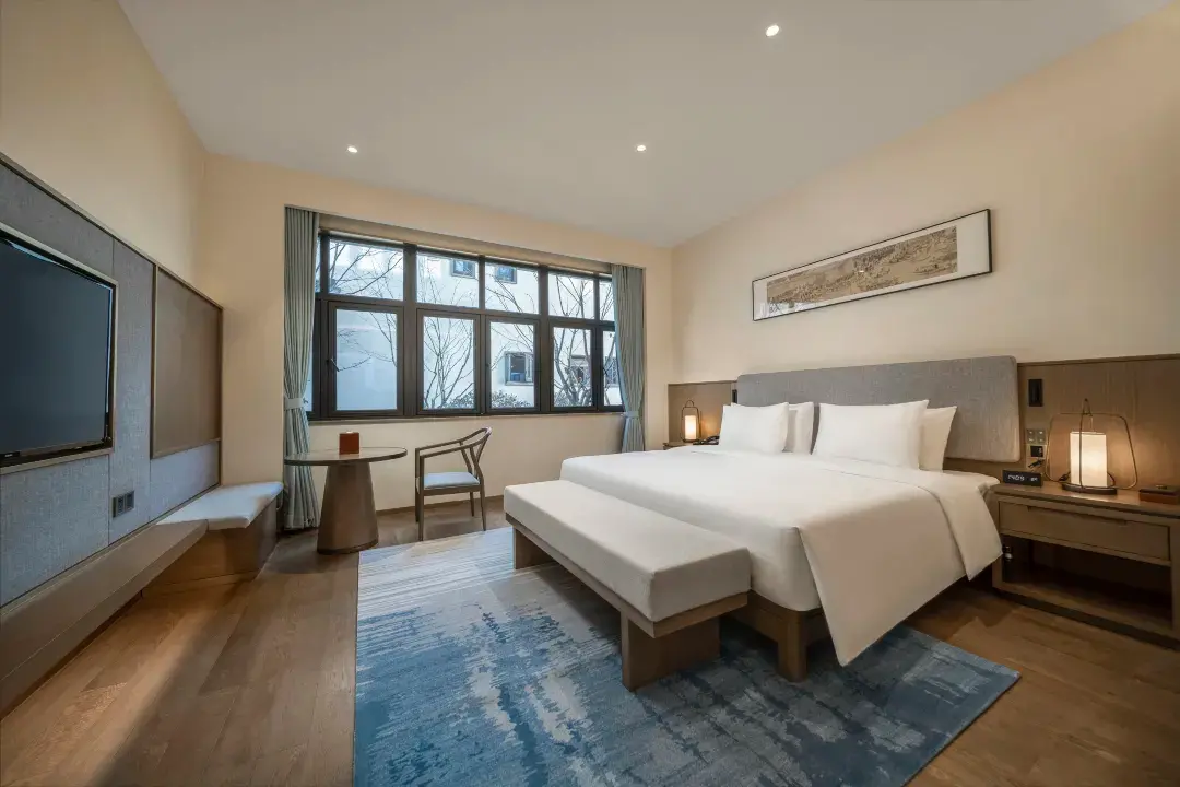 酒店共计客房135间以运河、芦席、丝绸、书院为主题的客房共计112间完美诠释了嘉兴鱼米之乡、丝绸之府及运河文化的特色