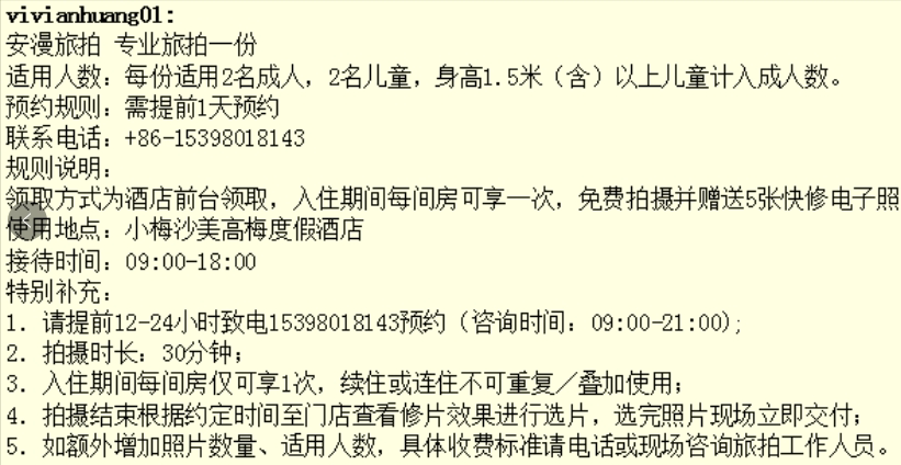 ⑥ 本产品禁止上线、携程、艺龙、去哪网、飞猪旅行、美团网等渠道上线销售,一经发现罚款2000元,订单不退不安排