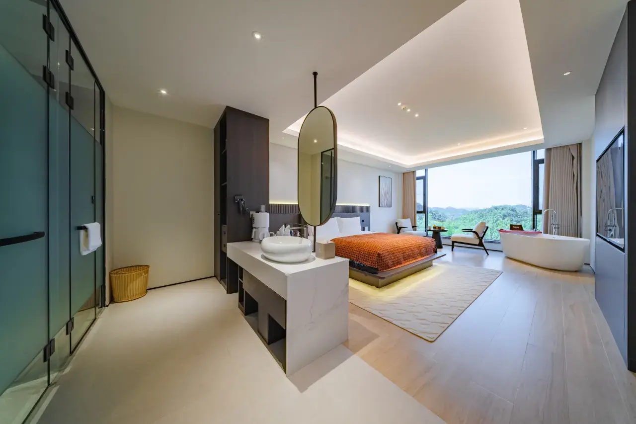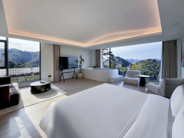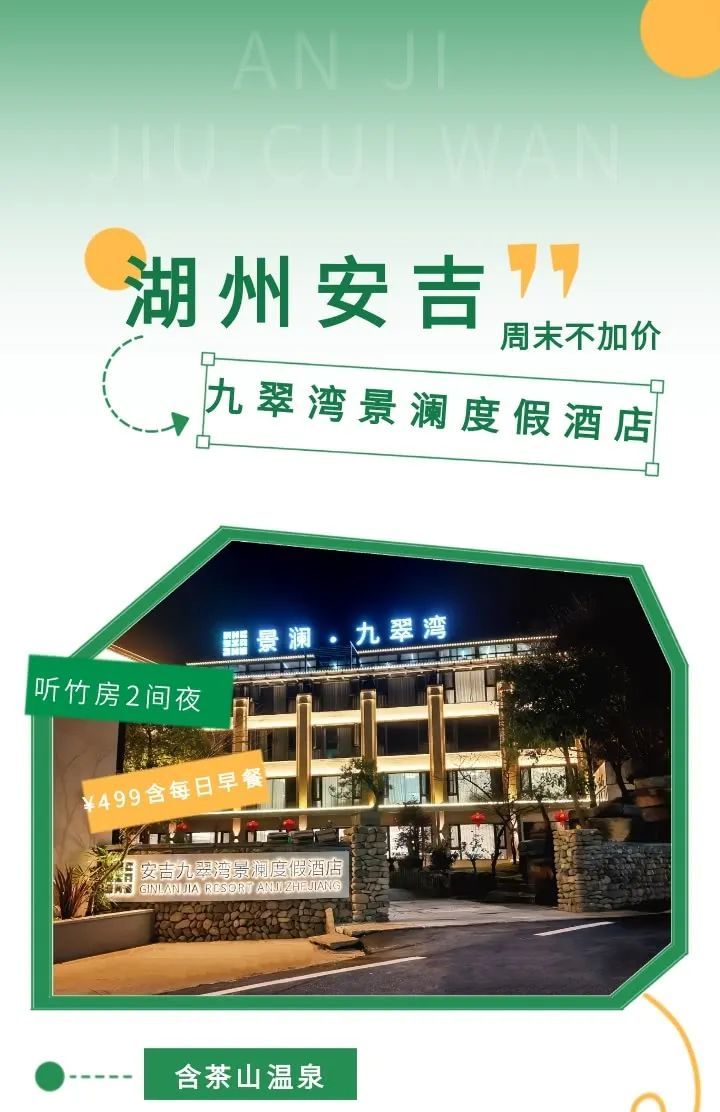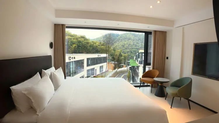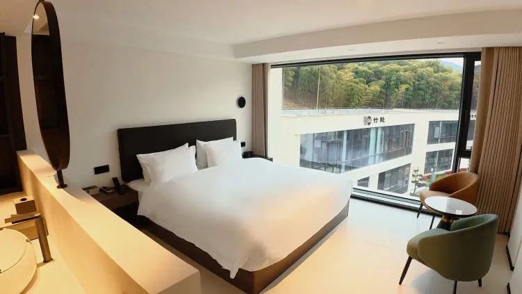 安吉的春天,竹林抽新芽,茶山吐新绿。九翠湾景澜隐于万亩竹海间,听竹大床房枕着簌簌竹声入眠。