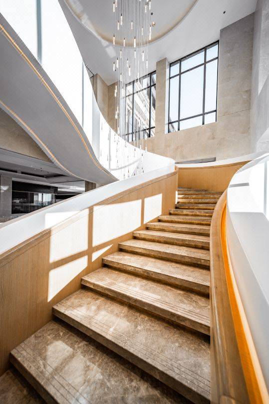 作为万豪集团旗下的品牌酒店,温州空港万豪酒店的设计精致堂皇,步入酒店大堂,晶莹的水景吊灯立显法式风情,与格调灵动的空间相得益彰,轻奢又时髦;旋转楼梯透露着英伦气质的贵气。
