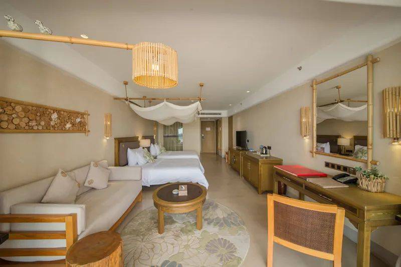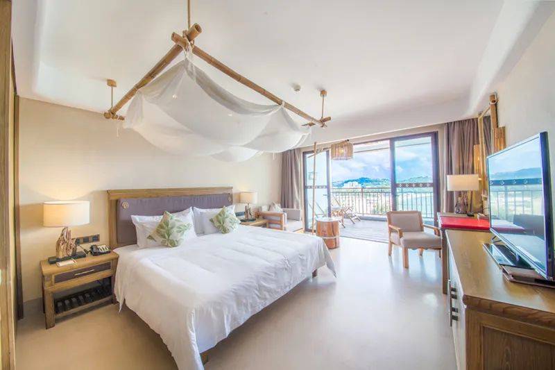 酒店拥有268间怀旧复古风格的亲海客房、海景套房,凹凸斑驳的艺术墙面,独具匠心的室内装潢,远眺葱郁群山,近瞰码头、快艇、渔船、沙滩。