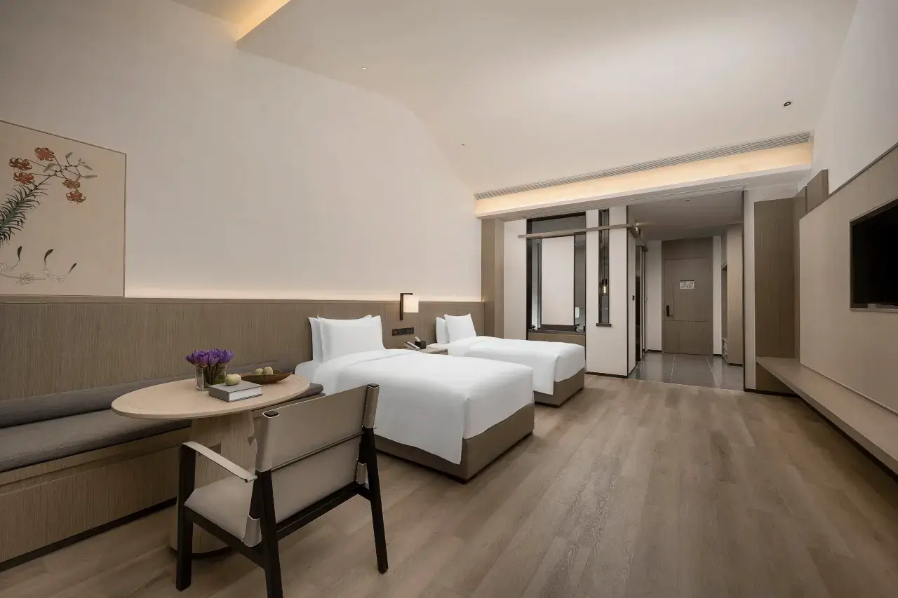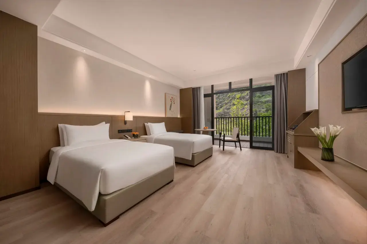 本次套餐入住的房型是雅尚大/双床房。面积达40㎡,空间宽敞,空间规划合理。面山而居,环境清幽安静。