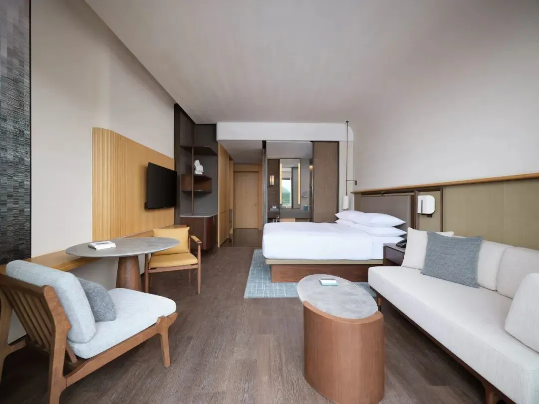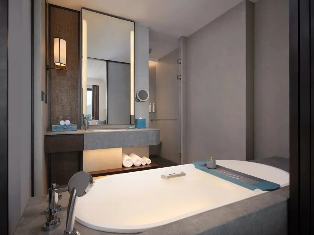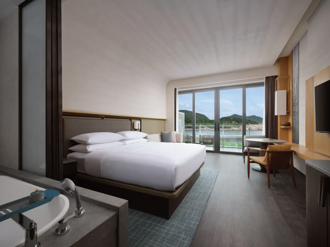 客房依山傍海,配置大理⽯浴缸及宽敞的私人阳台,