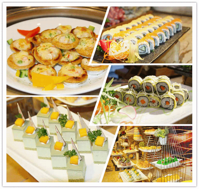 有海鲜、寿司刺身、烧烤、煎扒、熟食
