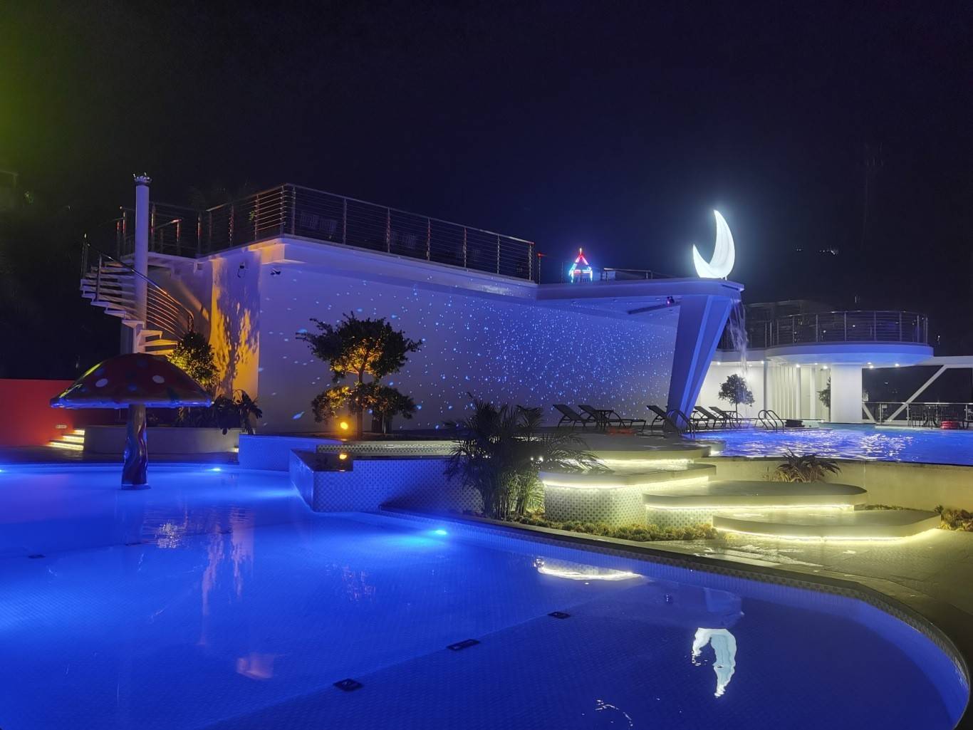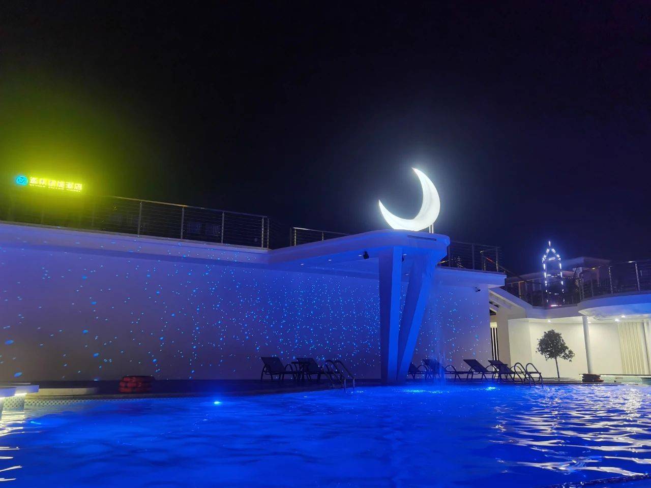 夜幕降临的时候泳池,仿佛坠入一颗颗星星