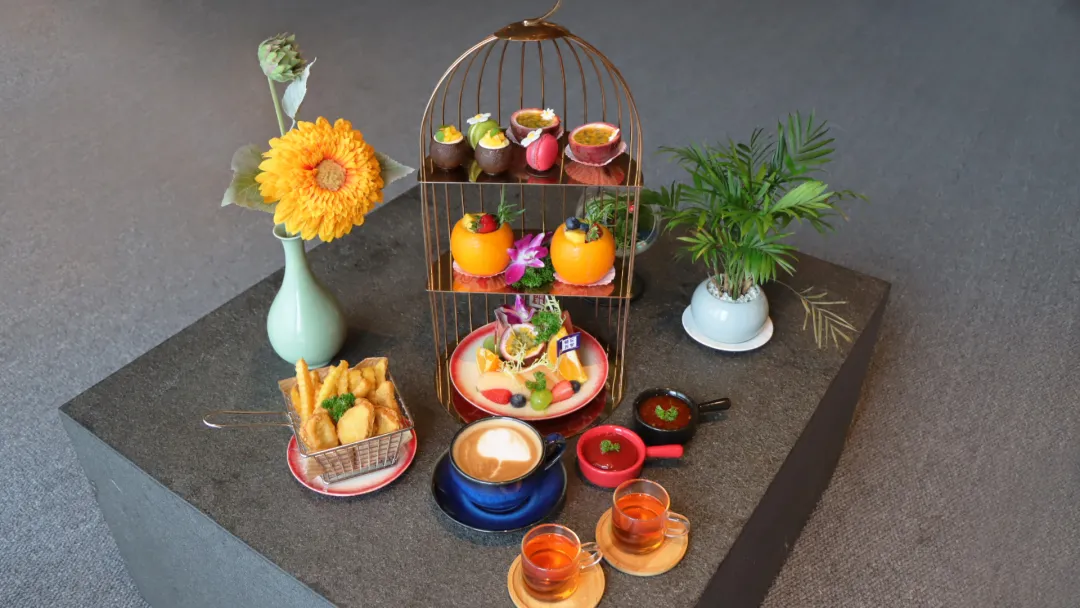 下午茶餐单(仅供参考,以实际出品为准):马卡龙、椰子慕斯、香橙慕斯、百香果布丁各2个、炸鸡块&炸薯条&拼盘*1份、时令水果拼盘*1份、美式/卡布奇诺/拿铁/饮品四选二(仅限堂食);