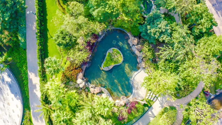 一座充满山林野趣的山中公园,精心打造浣溪叠石、逐风瀑布等自然景点,以及儿童乐园、茧空间、开心农场等公共空间,通过大自然的曼妙馈赠,满足全龄游乐休闲度假需求。