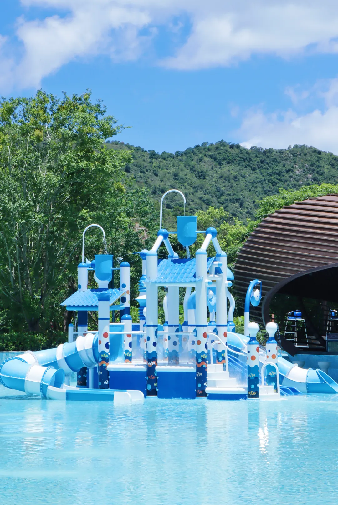 3000平米的户外嬉水池,面朝着连绵的山色,不仅可以自在玩水,也是赏美景的绝佳观景位。