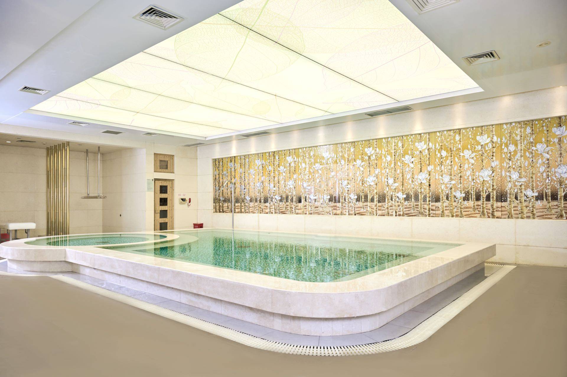 酒店专属的 “喜来登水汇” 是宾客舒缓身心的绝佳去处,这里汇聚多种休闲养生设施:设有独立水疗护理室与传统护理室;此外,水汇还涵盖沐浴、桑拿、足疗等基础养生项目,更引入韩式蒸房、维其浴等特色体验,搭配水底按摩浴池与冲浪池,让宾客在温热水流与舒适环境中,彻底释放压力,享受沉浸式放松。