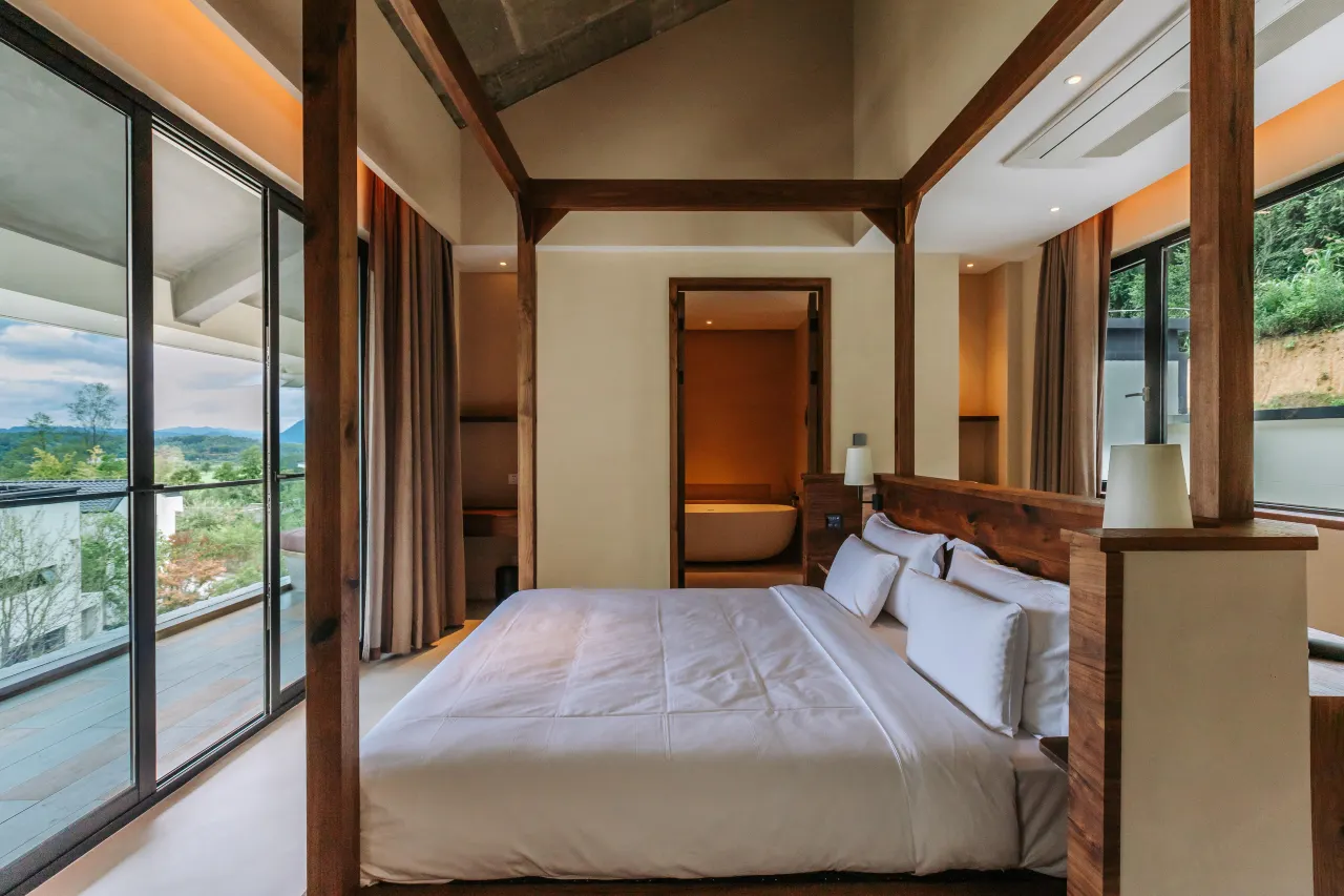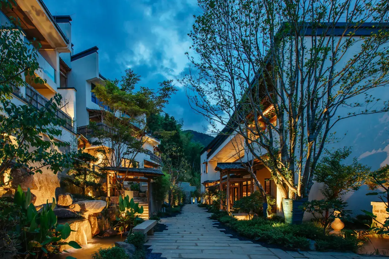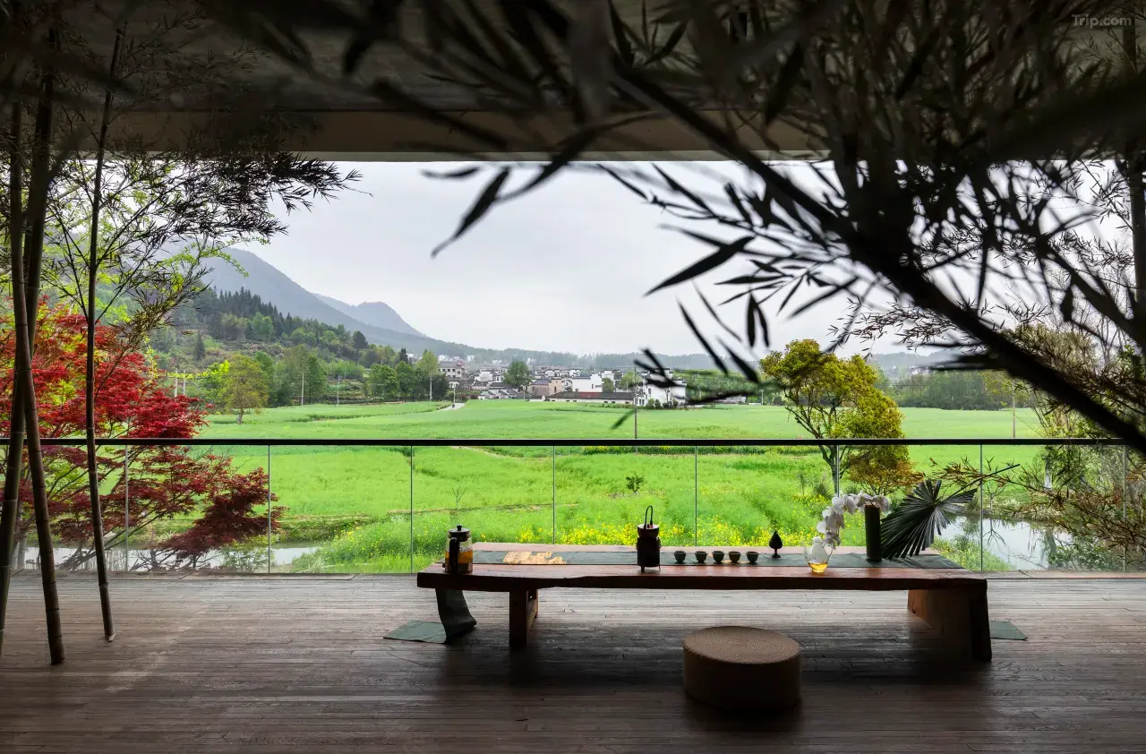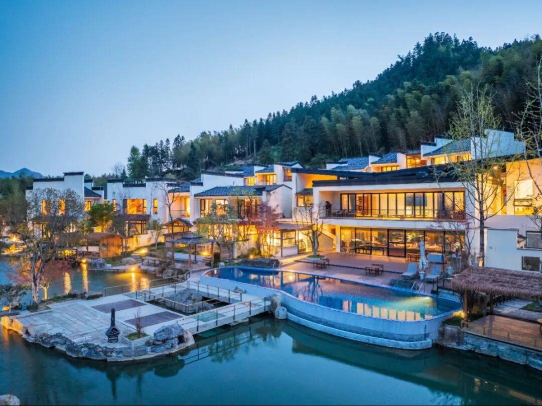 15栋新式徽派园林别墅,37间房间都配备现代化智能管家,设计理念出自无名初酒店的创始人-陈熙,靠山面田、以山水阡陌入景,造园林楼阁隐世。