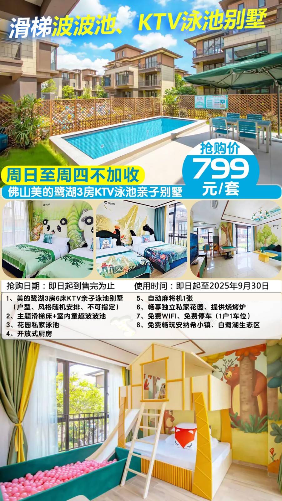 1、美的鹭湖 3房6床亲子泳池别墅 1套1晚