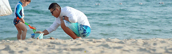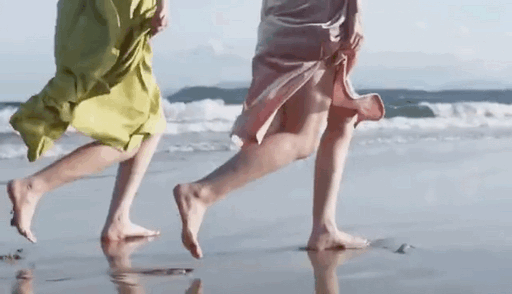 卷起裤管光着脚丫,踏沙逐浪嬉戏玩耍