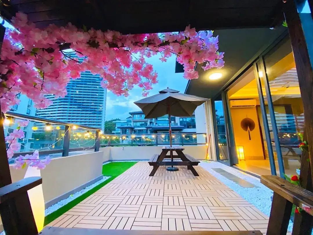 国庆一口价¥1288抢合正东部湾樱漫日式INS风3房叠墅!自动麻将+烧烤炉+厨房