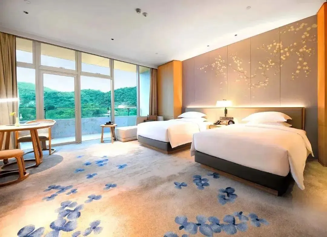 错峰特惠【西樵山希尔顿欢朋酒店】¥399住舒适/高级园景双床房1晚+欢朋西餐厅自助早餐+听音湖氢湾游船票两张!享二楼健身房、九楼儿童乐园!近西樵山、广东千古情、盈香生态园等[高级园景双床房含早含游船]