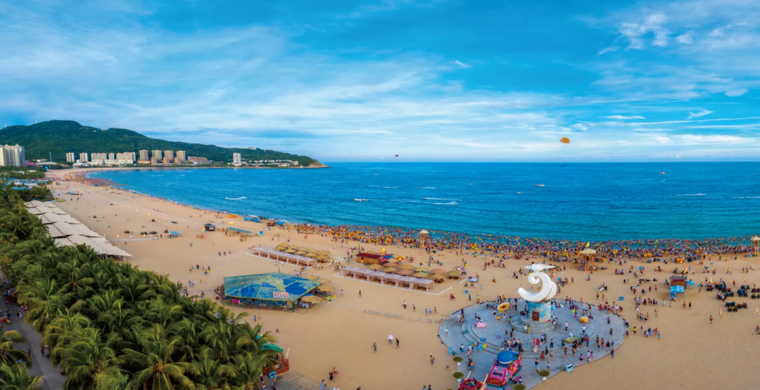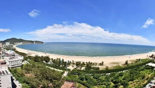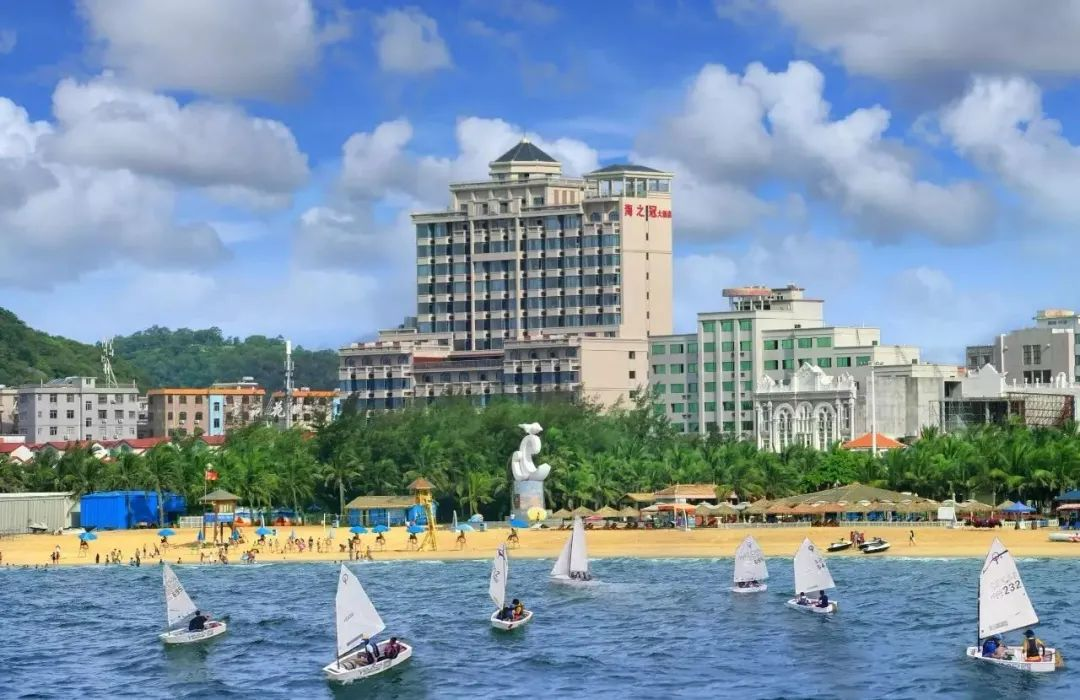 大角湾因形如牛角从而得名,国家5A级著名旅游景点,项目多多,海上乐园、海上滑伞、海中摩托,沙滩飞车等。
