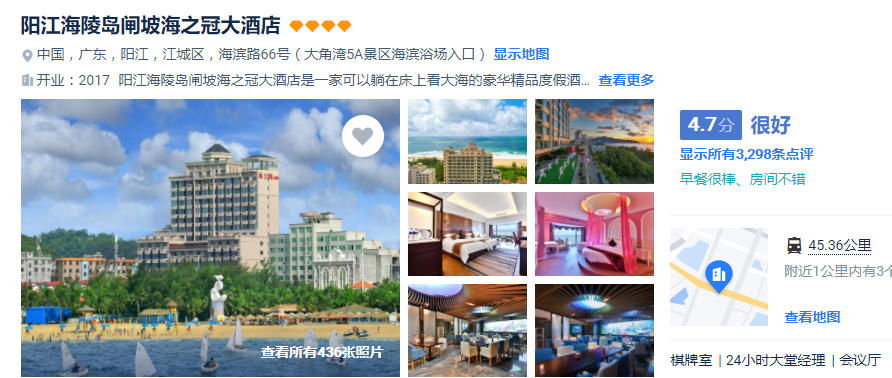阳江海陵岛海边临海别墅环境与宣传的一致,设施也都是较高品质的,这点很赞。管家服务也非常到位,随叫随到。离海滩很近,虽正好遇上台风,没法下海及烧烤,但也安排度过了3…