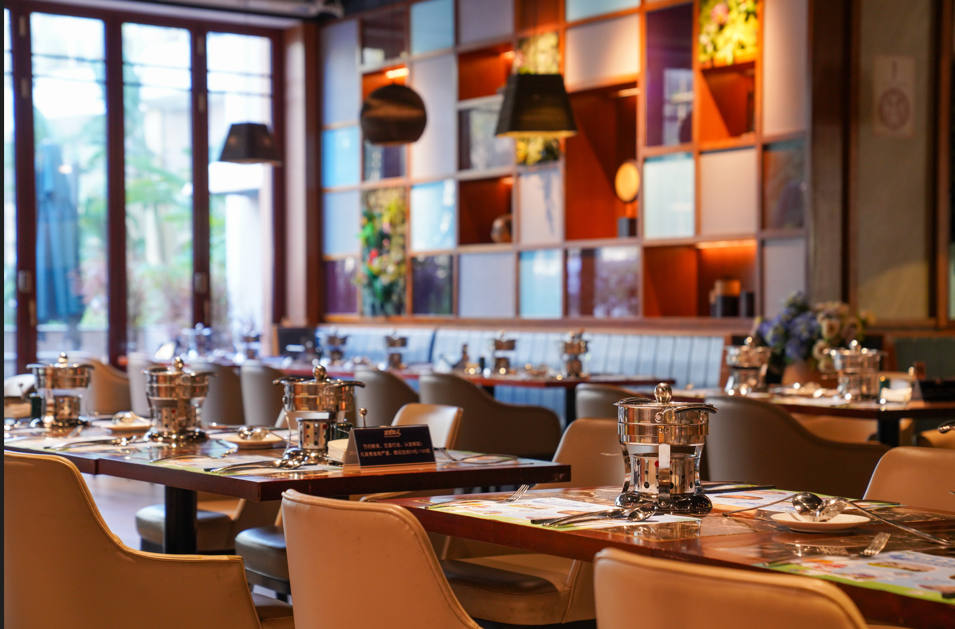 池畔西餐厅设计新颖,顾客在高雅舒适的室內用餐