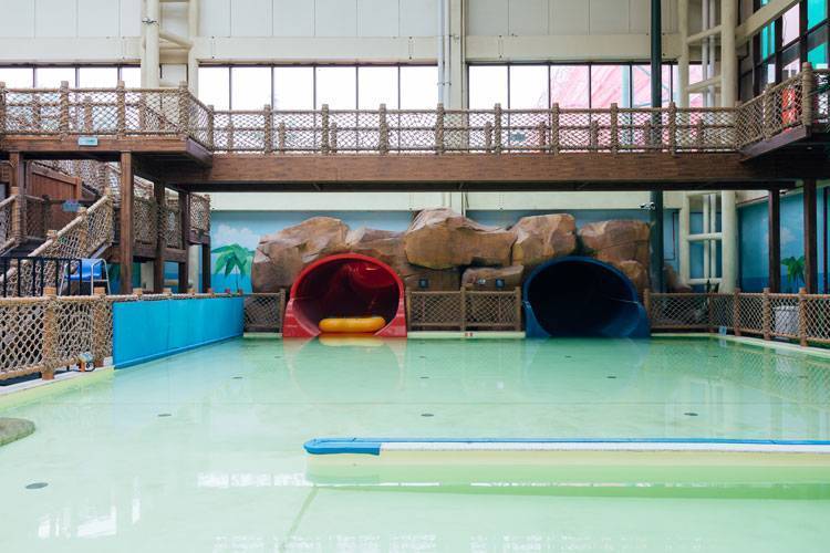 巨型透明穹顶笼罩之下的室内水上乐园,