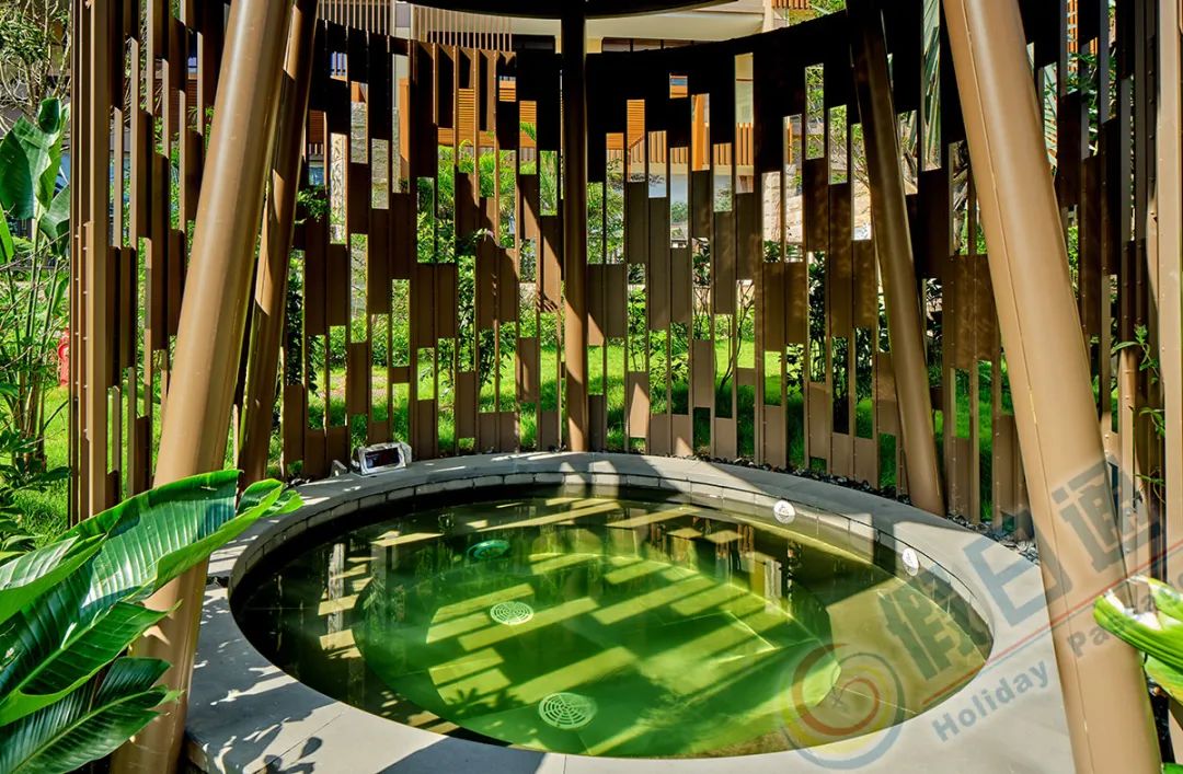 两侧活力池,在满眼绿意的天然氧吧中