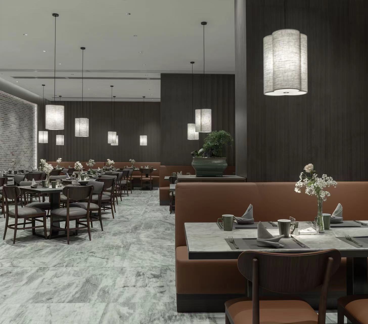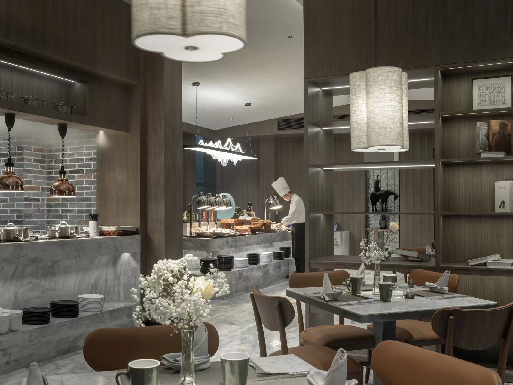 泉谷餐厅位于酒店一层、可容纳128人同时就餐