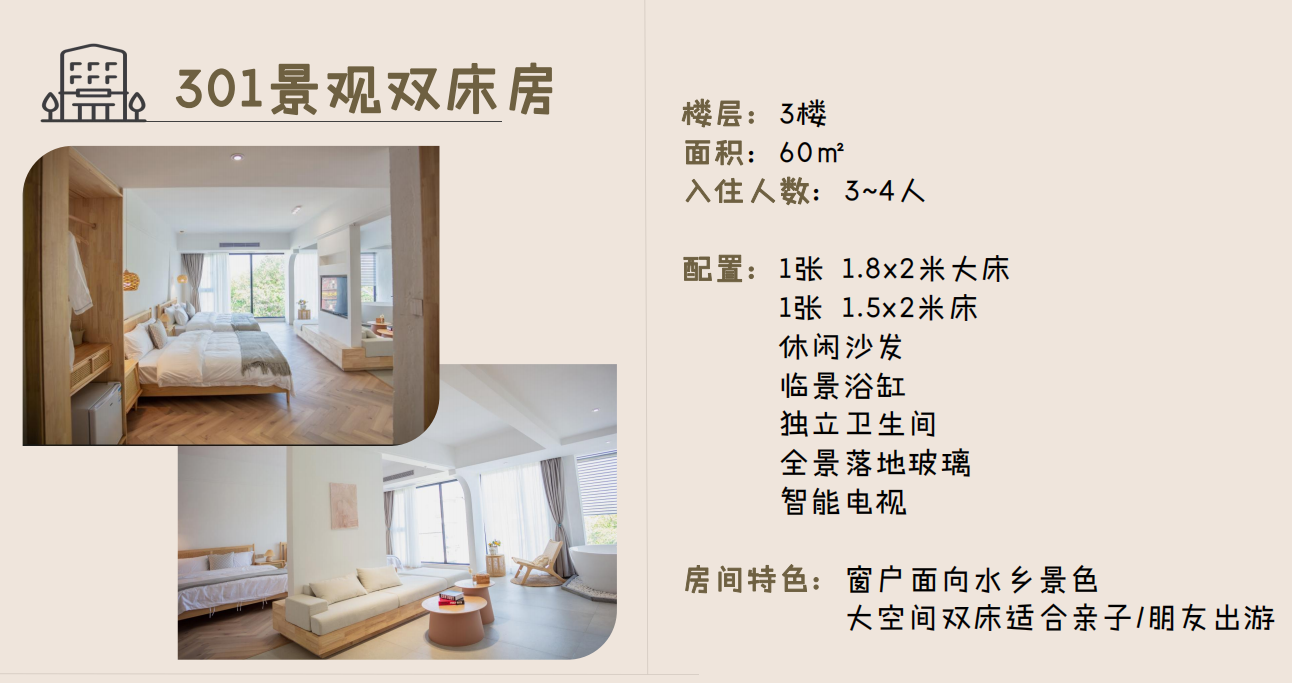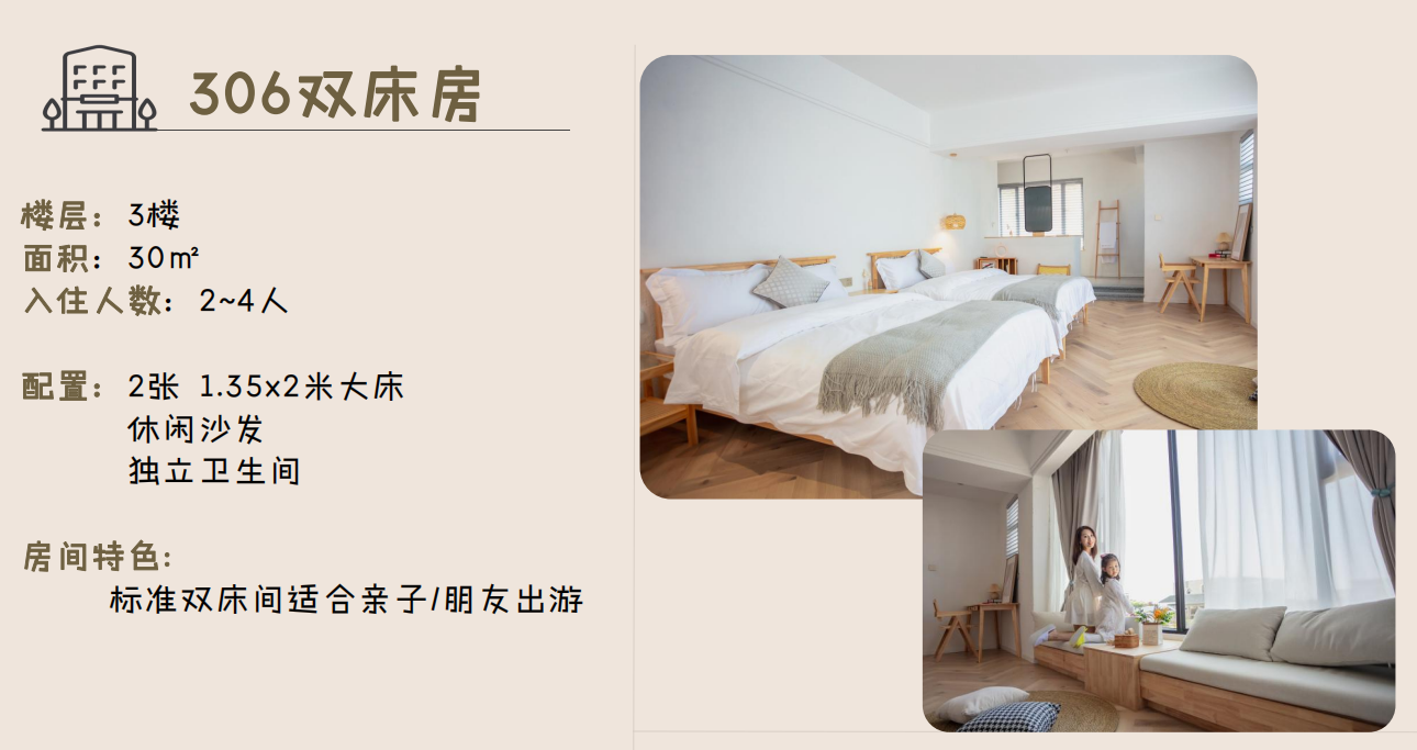 ● 306/406水乡双床房 1间1晚