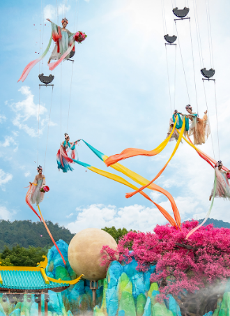 巡游、快闪、歌舞…演艺全天候不间断!衣袂飘飘的仙子,翩跹起舞《仙女散花》NPC互动,沉浸体验,穿越到仙侠世界,和哪吒battle套圈圈,和《白蛇传》主角交流DIY香囊的技巧…
