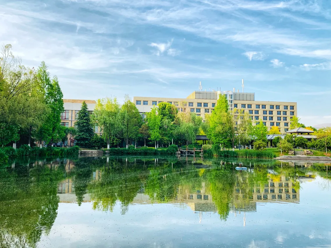 酒店整体以中式风格为主,绿树成荫、鸟语花香、湖水荡漾,自然资源得天独厚。步入其间,移步易景。