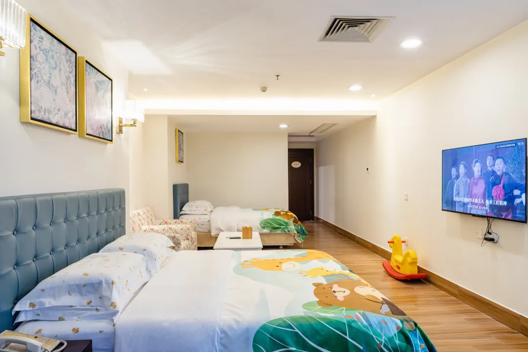 酒店至观音山游乐场门口有专门通道,由酒店左侧入口步行仅需7分钟即可到达,沉浸式体验2万亩国家森林公园,无限亲近大自然,可参观打卡园内古树博物馆、十二生肖雕像、呆萌文化艺术长廊等设施。