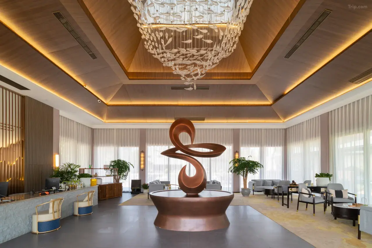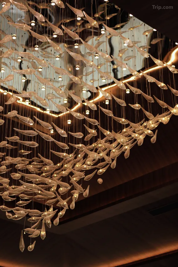 大堂采用中式美学设计,既不失奢华、气派,也具有中式含蓄、内敛的风格。古风山水的中式元素与现代艺术之美相辉映,传统中透着现代感,现代中糅合古典之雅致。整个酒店大堂空间开阔而明净,光影斑驳而美丽,构筑了奢而不落俗、雅而不拘谨的环境,是旅客短暂休息、会友的高级场所。