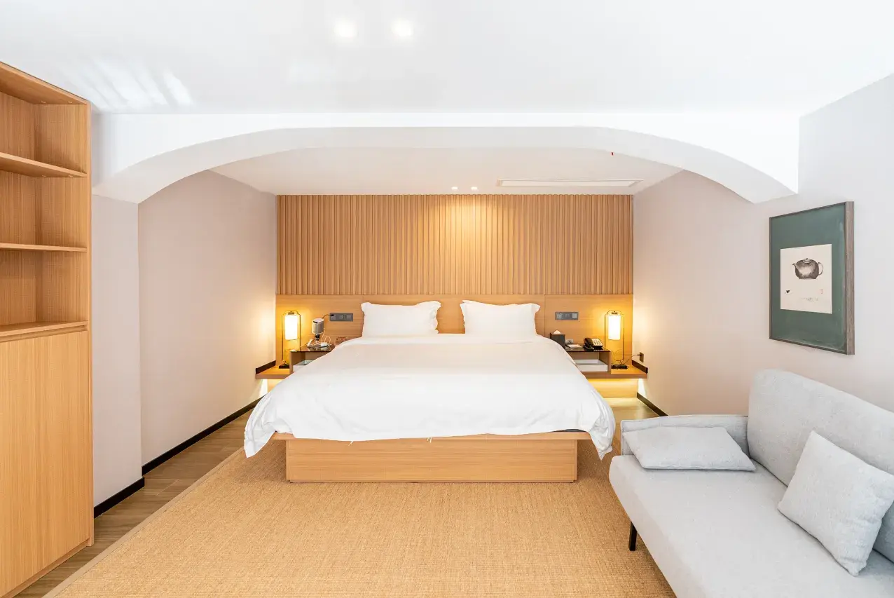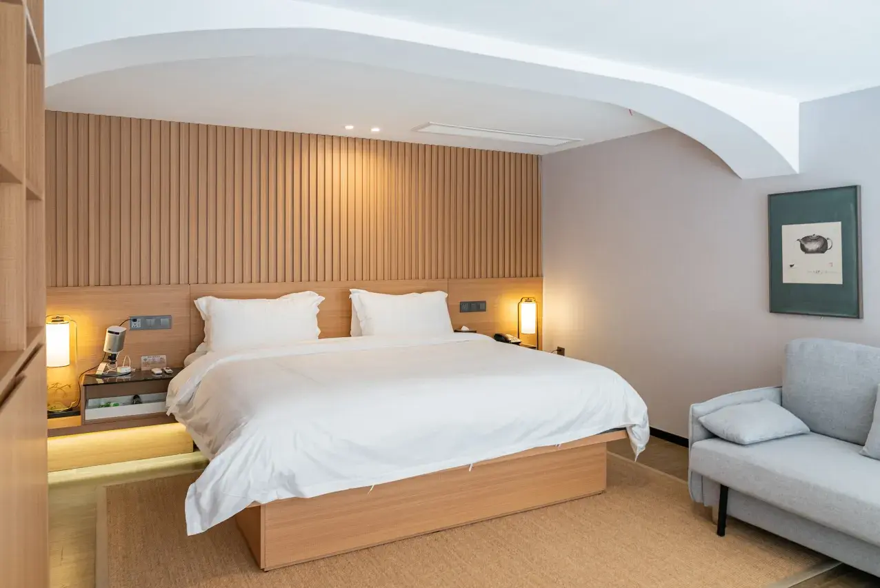 客房均采用实木家具、高品质中式装修,布置完善细致,设施齐备高档,风格典雅温馨,环境舒适自由。