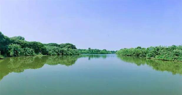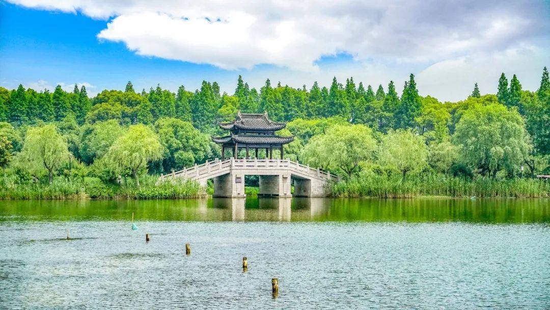 绿柳长堤,烟水连翠,杉树蔽日