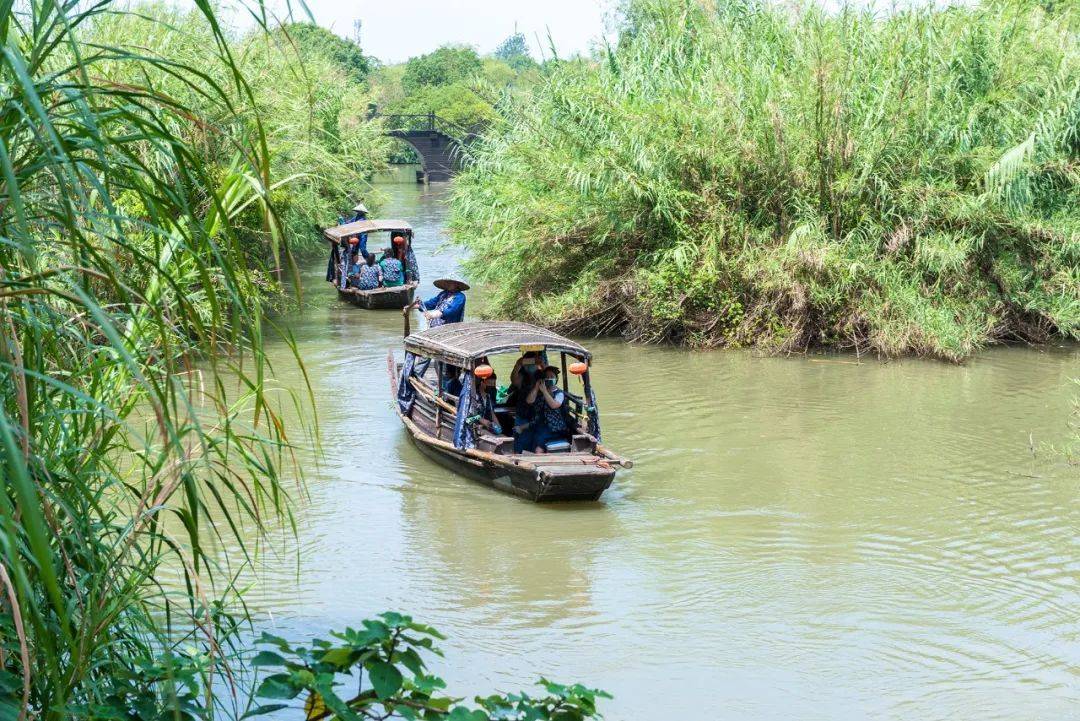 傍晚,乘一叶扁舟游入沙家浜,在芦苇荡绿色的帷幕里