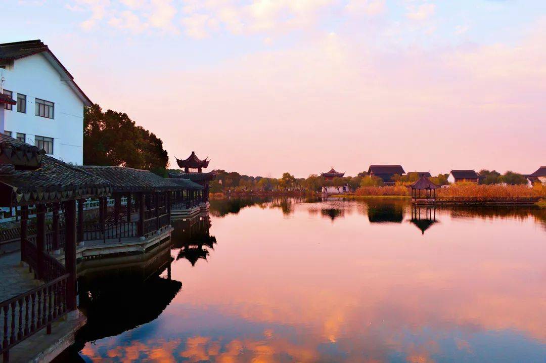 而不远处的昆承湖在夕阳里波光粼粼