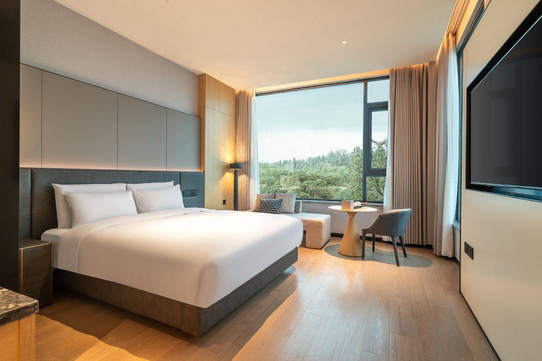 本次套餐入住雅致房。配备180°落地窗,引入无边光线,客房设计简约时尚,采用原木家居,为旅客营造了一个舒适的旅居空间。