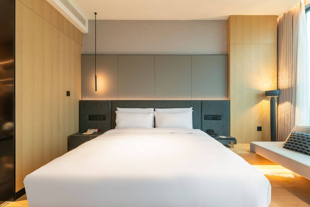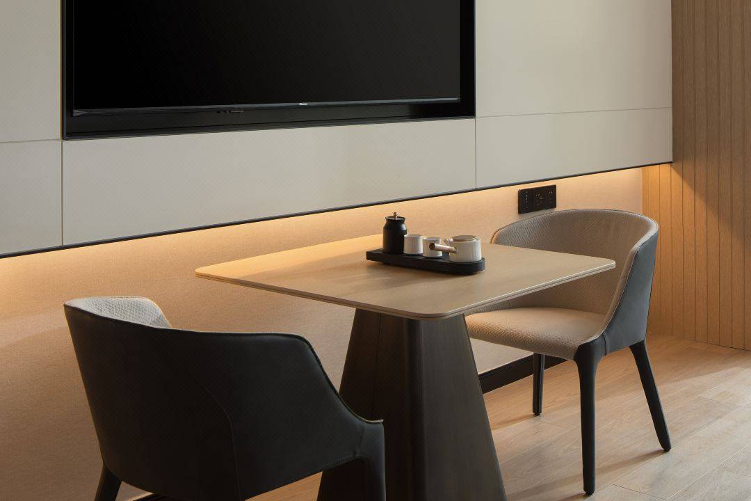 客房不仅面积大,配套设备也一应俱全,干湿分离卫生间、电动窗帘、智能马桶、多功能化妆镜等,都能满足日常居停所需。