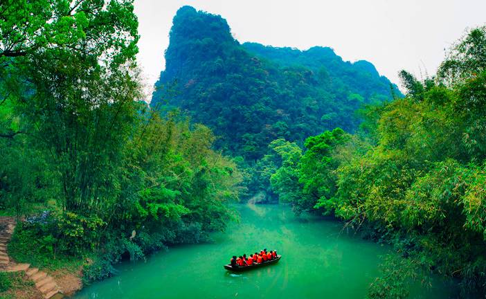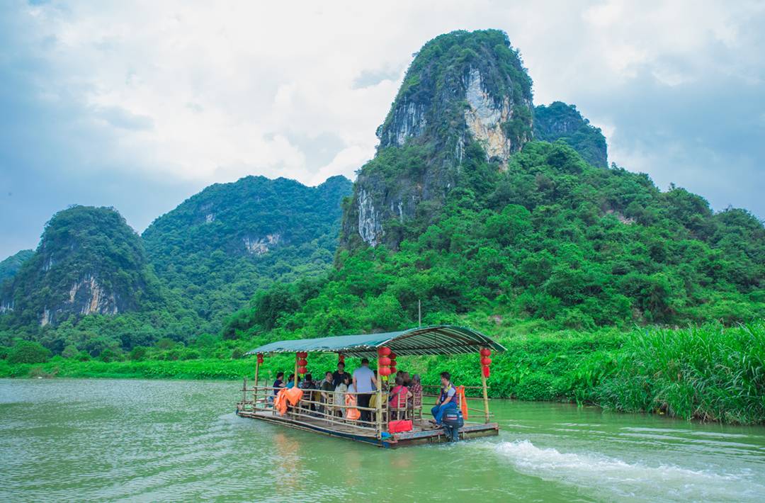 ● 位于彭家祠景区内的漂游,是英西峰林景区内最浪漫的景点之一。当竹筏穿行在清澈碧绿的黄花溪上,两岸如画的峰林,以及郁郁葱葱草木、田野,让人目不暇接,就如人在画中游一般