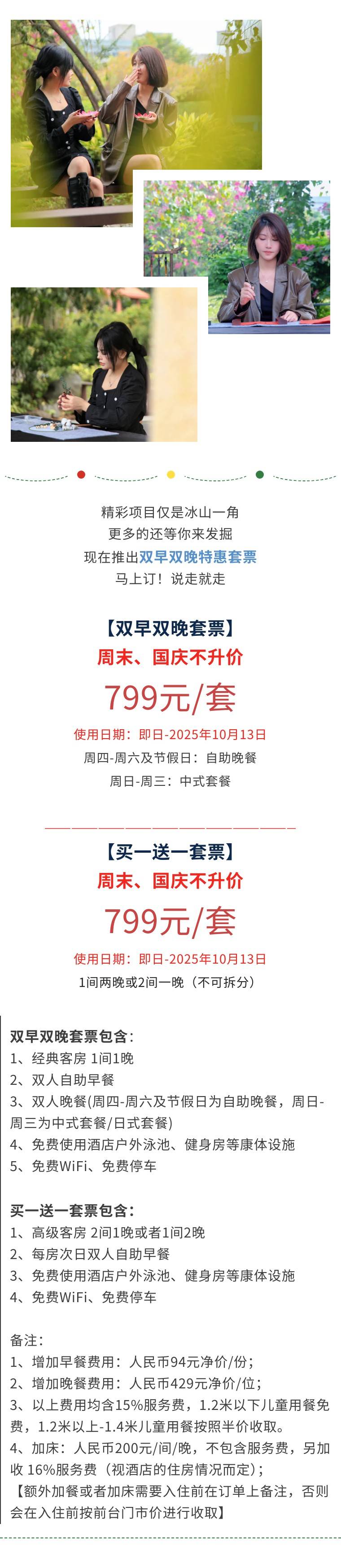 【买一送一】1199元起住经律论主楼客房1间2晚或2间1晚(不可拆分),享双人早餐+无限次温泉+赠送卡丁车体验券~