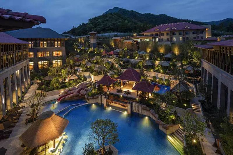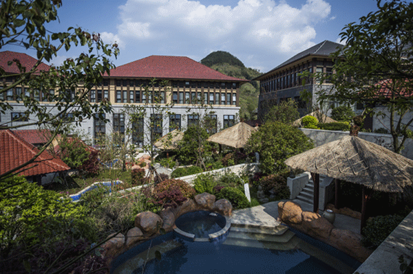 临安湍口众安氡温泉度假酒店,背靠群山,占地6.9万平米,坐拥百亩绿色景观,建筑外观为东南亚风格,是华东地区规模宏大的温泉度假胜地之一。