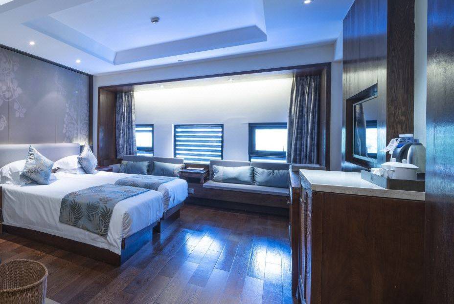 温泉中心里的度假配套很完善,吃住娱全涵盖。客房、餐厅、休息区、电影放映厅、游戏机娱乐区、室内羽毛球场、乒乓球和台球区、运动健身区、儿童游戏区和特色餐厅区…一家大小都能满足。